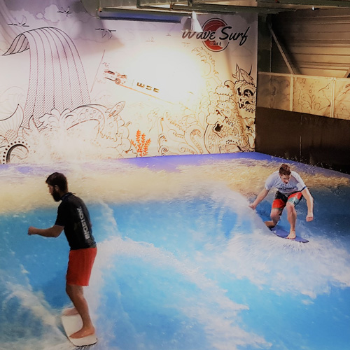 Le Wave Surf Café propose, sur réservation conseillée, la pratique indoor d’activités de glisse sur une « vague artificielle » : le Bodyboard et le Flowboard. Cette dernière activité est un mélange de trois sports de glisse bien connus qui permet de retrouver la fluidité du surf ou du skimboard, les figures du skateboard et la sensation d’un virage de snowboard en poudreuse. Il propose aussi un espace trampoline de 350m² pour s’adonner au plaisir des sauts et figures en tout genre.